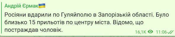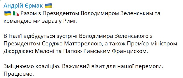 Об этом сообщил глава Офиса президента Андрей Ермак в своем тг-канале.