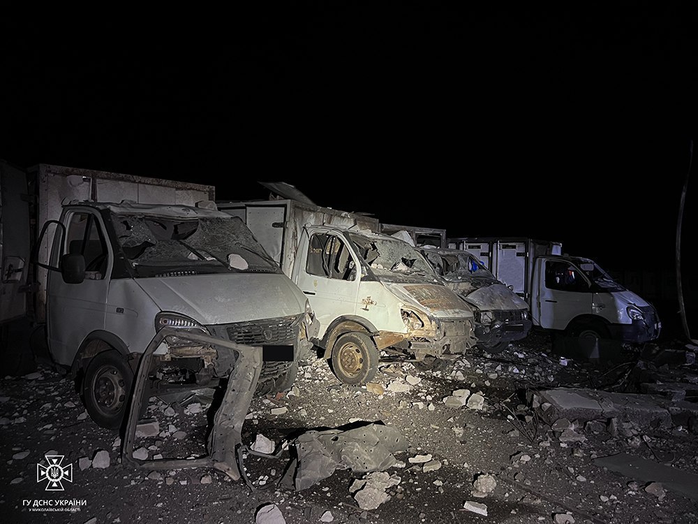 08:03 Фото последствий удара по Николаеву: на кадрах видно разрушенное здание предприятия, сгоревшие машины, а также пострадавший от взрывной волны жилой дом.