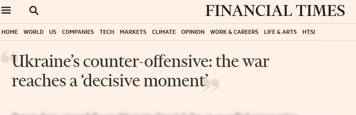 Также существуют опасения по поводу того, что неудачное контрнаступление может поставить под вопрос оказание Западом дальнейшей военной помощи. В этом случае союзники Украины также могут начать интенсивнее подталкивать ее к мирным переговорам с Россией.