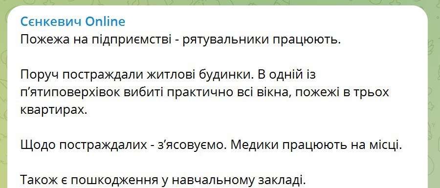 Повреждения незначительные – забор, фасад, окна здания, сообщил губернатор Руслан Кравченко.