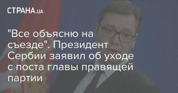 "Через несколько дней я больше не буду председателем политической партии. Оппоненты врали, что этого никогда не произойдет. Объясню все людям на этом большом съезде и так далее", - приводит издание слова президента Сербии.