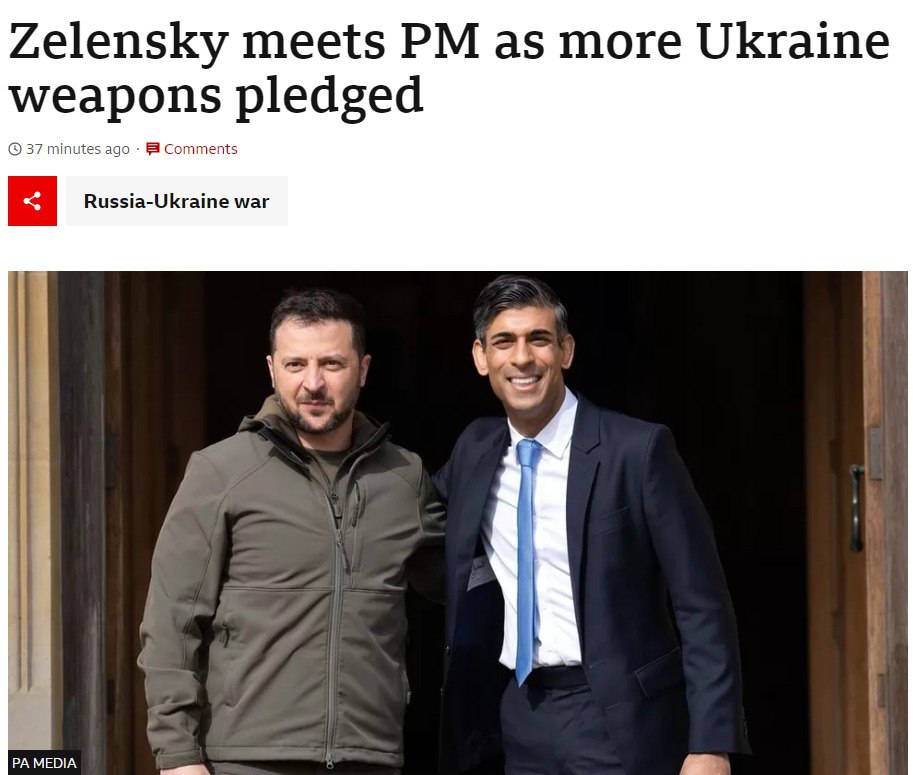 11.45 Зеленский прилетел в Британию и уже обнимается с премьером Риши Сунаком.