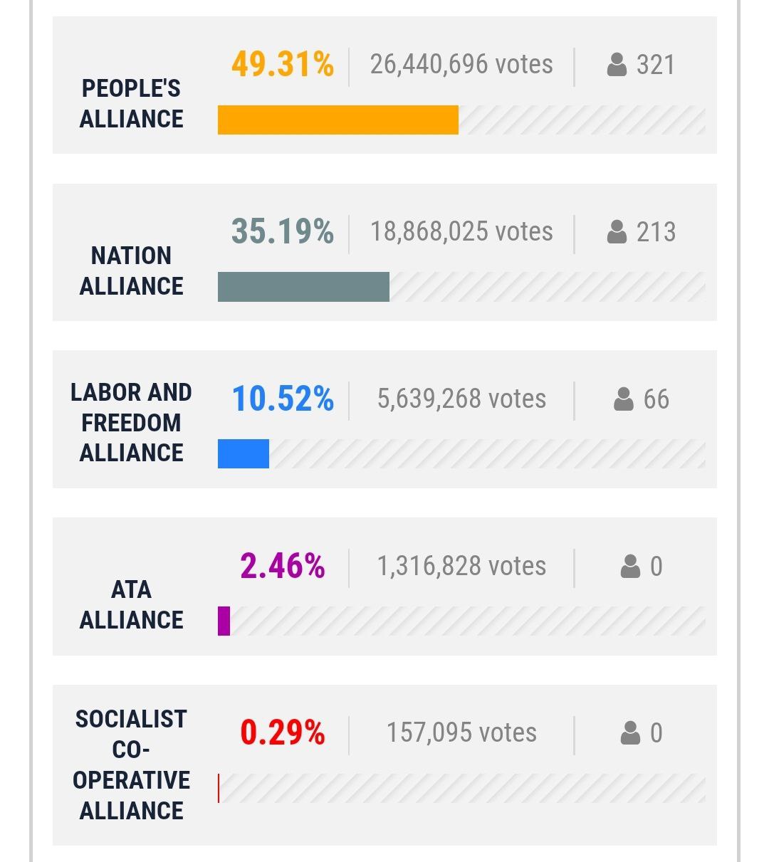 Большинство мест в законодательном органе, судя по всему, берет "Народный альянс" Эрдогана - у него сейчас 321 место из 600.