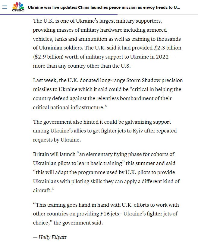 Британия этим летом запустит обучение для украинских пилотов. Правительство планирует "адаптировать программу, используемую британскими пилотами, чтобы дать украинцам навыки пилотирования, которые они могут применять на других типах самолетов".