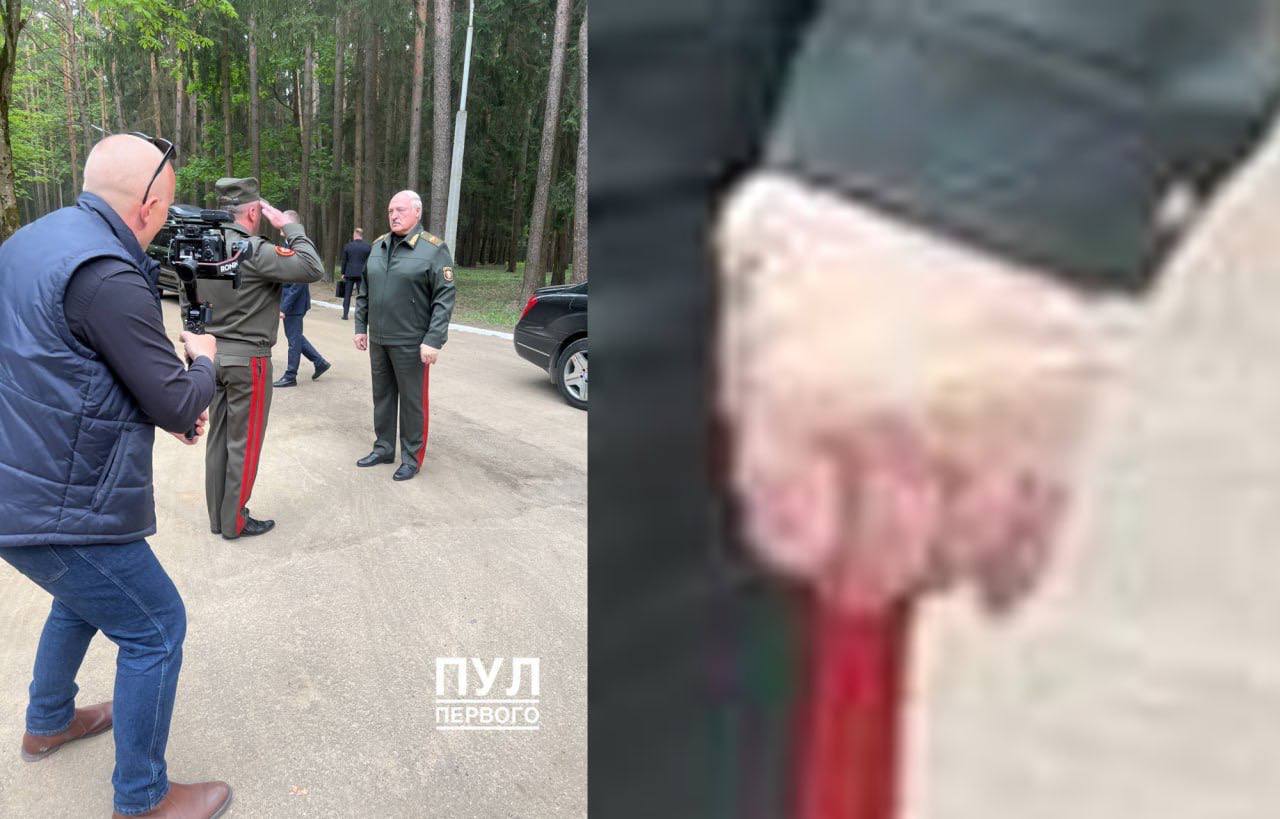 При этом на опубликованных фото у президента Беларуси виден бинт на левой руке.