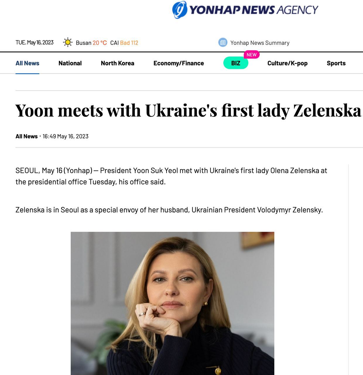 Также сообщается, что президент Южной Кореи высоко оценил усилия первой леди Зеленской, направленные на то, чтобы поделиться ужасами войны в Украине с международным сообществом, и ее усилиями по получению помощи.