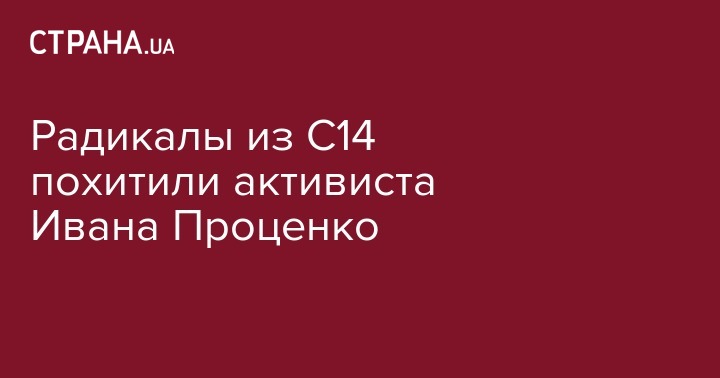 "Нацисты из группировки С14 похитили одного из участников флешмоба в Киеве - Иван Проценко. Его друзья не могут с ним связаться. Телефоны отключены. Ребята уже сделали заявление в полицию. Евгений Карась опубликовал у себя на странице информацию о самовольном задержании. Ссылается на базу данных 'Миротворца' как на решение суда. Иван там есть", - написал он.