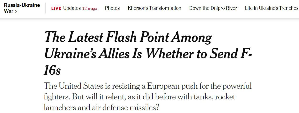 Издание констатирует, что "команда Байдена предложила отложить обсуждение отправки F-16 до окончания войны".
