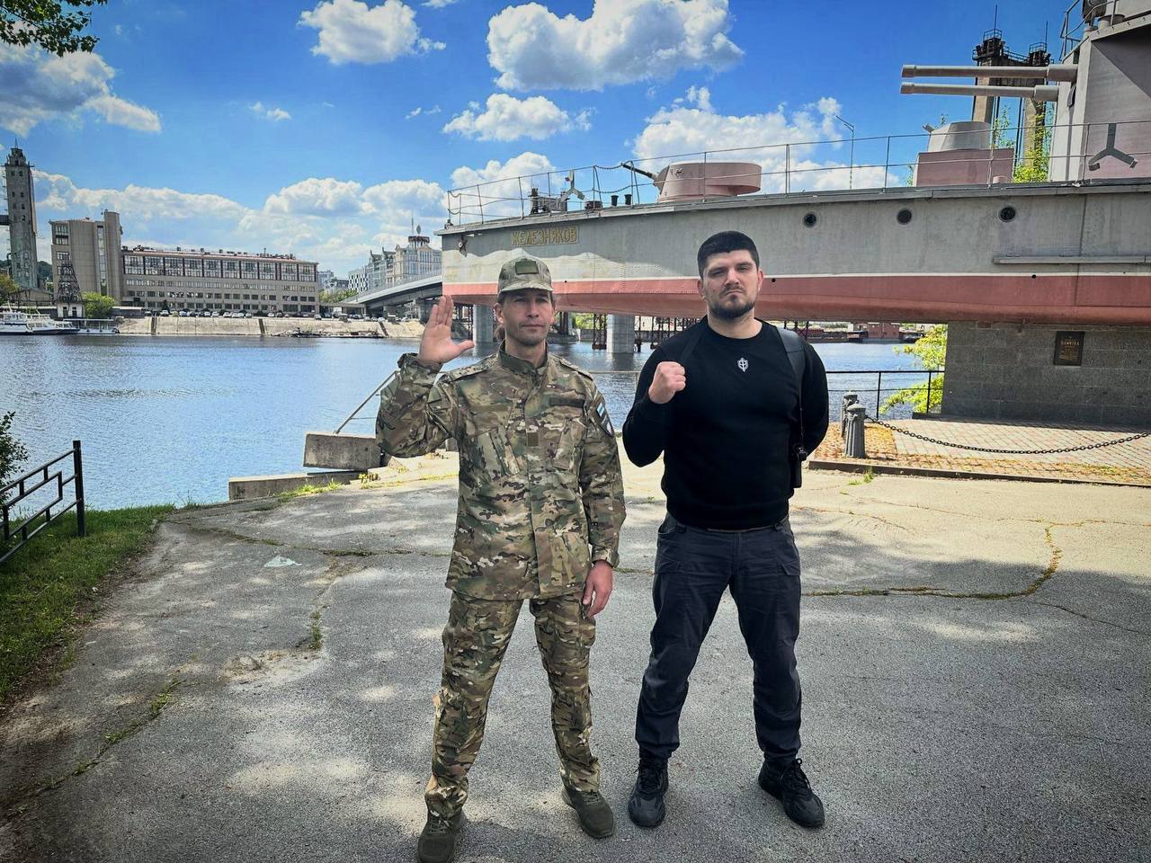 Причем фото то было сделано на Рыбальском острове, около местной достопримечательности - эсминца "Железняков" в парке Моряков. Рядом с которым, к слову, расположена штаб-квартира Главного управления разведки Украины, которое, по слухам, и курирует российские подразделения, воюющие на стороне Украины.