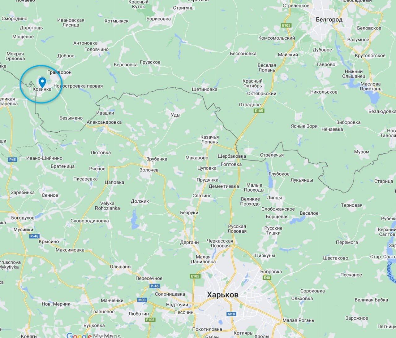 Из постов белгородцев следовало, что "украинская ДРГ" находится в Доме культуры в селе Гора-Подол (северо-восток от Козинки), по ней ведут огонь российские военные.