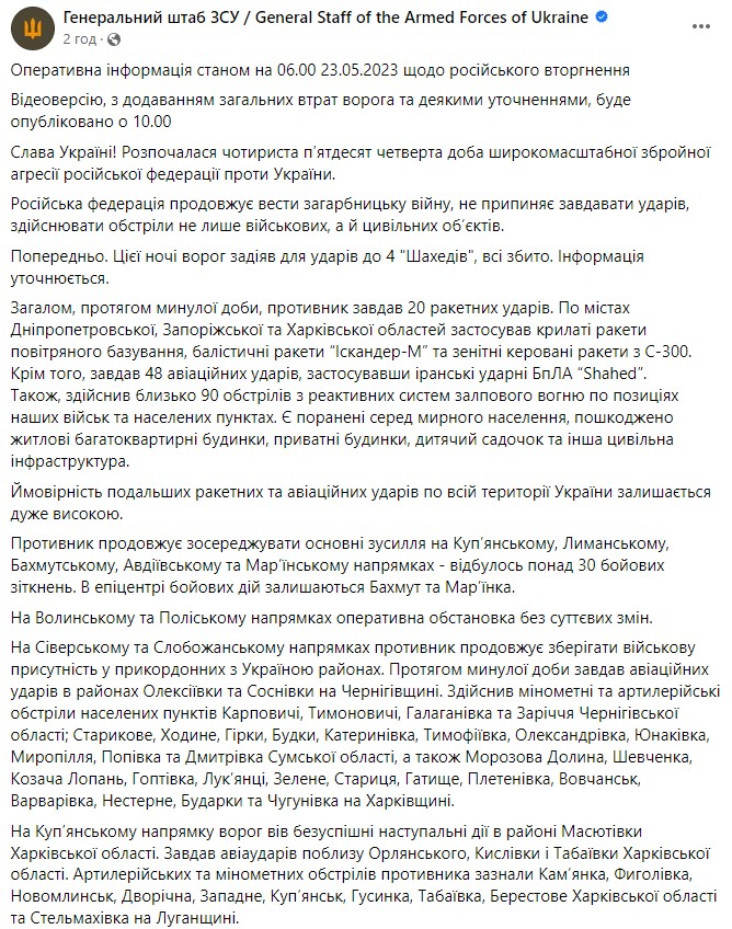 Война в Украине идет уже 454-й день. Мы следим за новостями 23 мая в своем онлайне.