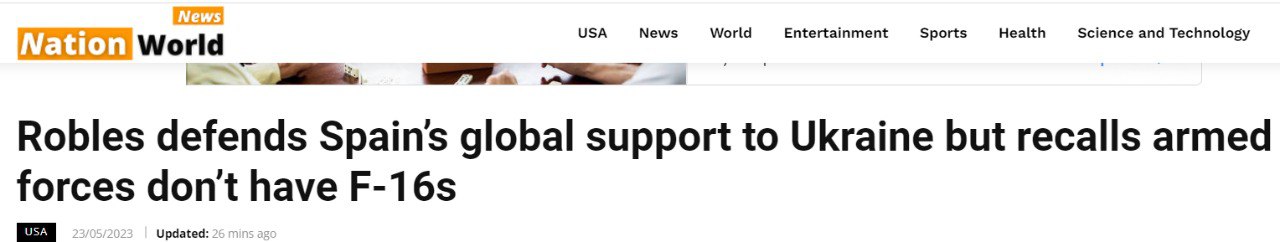 Испания не сможет передать Украине истребители F-16 или обучать украинских пилотов, потому что таких истребителей у нее нет.