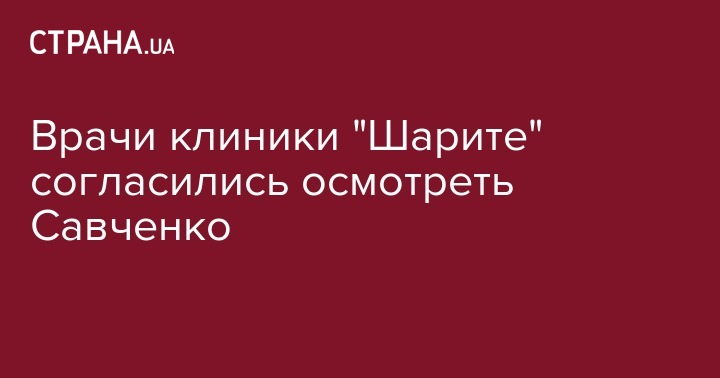 Врачи германской клиники "Шарите" согласились осуществить осмотр народного депутата Надежды Савченко ("Батькивщина"). Об этом говорится в сообщении пресс-службы президента.