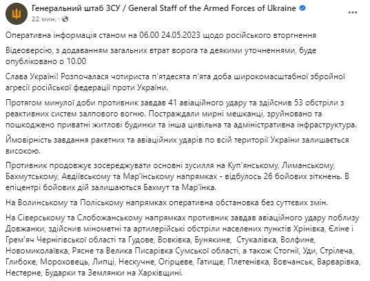 Что происходит на фронте 24 мая. Сводка Генштаба ВСУ