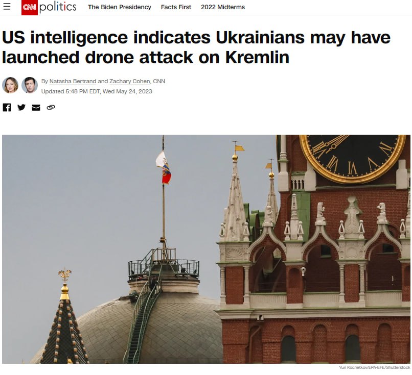 Уже второе американское СМИ пишет о причастности украинцев к дрон-атаке на Кремль 3 мая. В разведке США полагают, что Кремль беспилотниками атаковали украинские Силы специального назначения.
