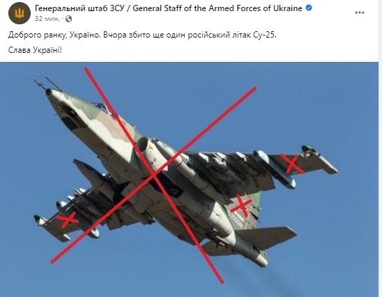 07.40 Вчера был сбит еще один российский самолет Су-25, сообщают в Генштабе.