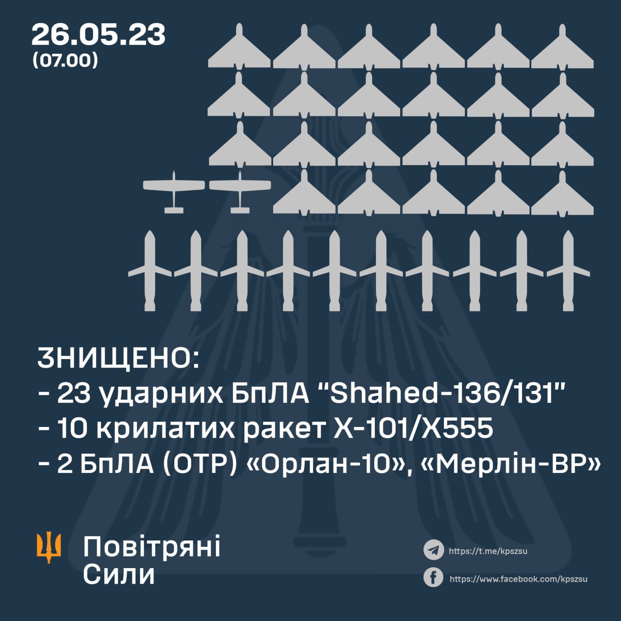 Уничтожено 10 крылатых ракет, 23 "Шахида".