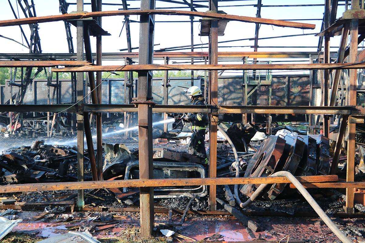 Серьезным разрушениям также подверглось транспортное предприятие.