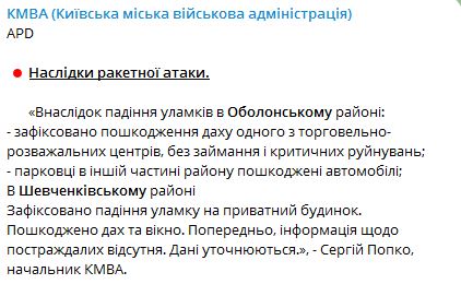 11.10 Глава Днепропетровской ОВА Лысак пишет, что удар по Днепру пришелся по медучреждению.
