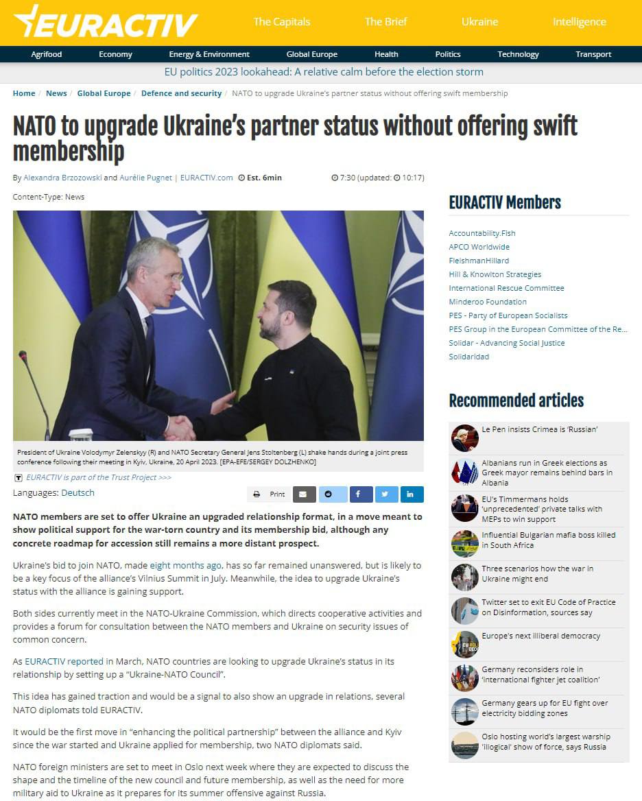 Также The Wall Street Journal писала, что на саммите Северо-Атлантического альянса в Вильнюсе в июле будет объявлено о создании совета НАТО - Украина.