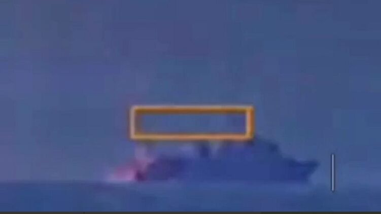 Позже украинские телеграм-каналы опубликовали видео, снятое с дрона-катера, который стремительно приближался к судну. Как утверждалось, он поразил корабль.