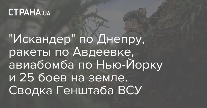 "Искандер" по Днепру, ракеты по Авдеевке, авиабомба по Нью-Йорку и 25 боев на земле. Сводка Генштаба ВСУ