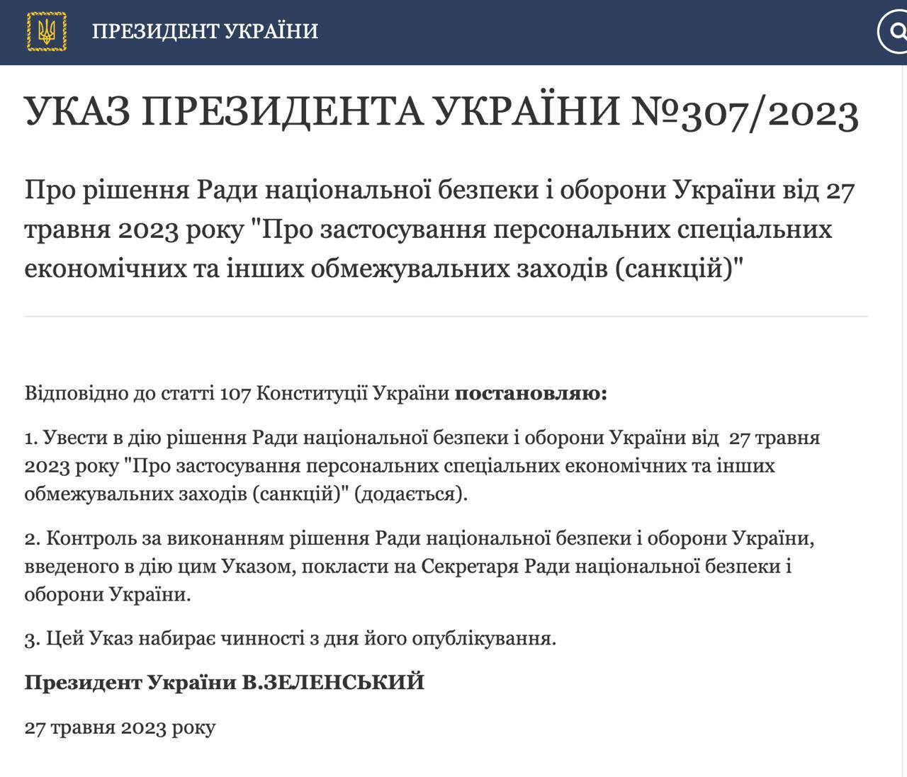 Сегодня, 27 мая, президент Украины Владимир Зеленский ввел в действие решение СНБО о новых санкциях в отношении россиян. В список вошли 51 физическое и 220 юридических лиц.