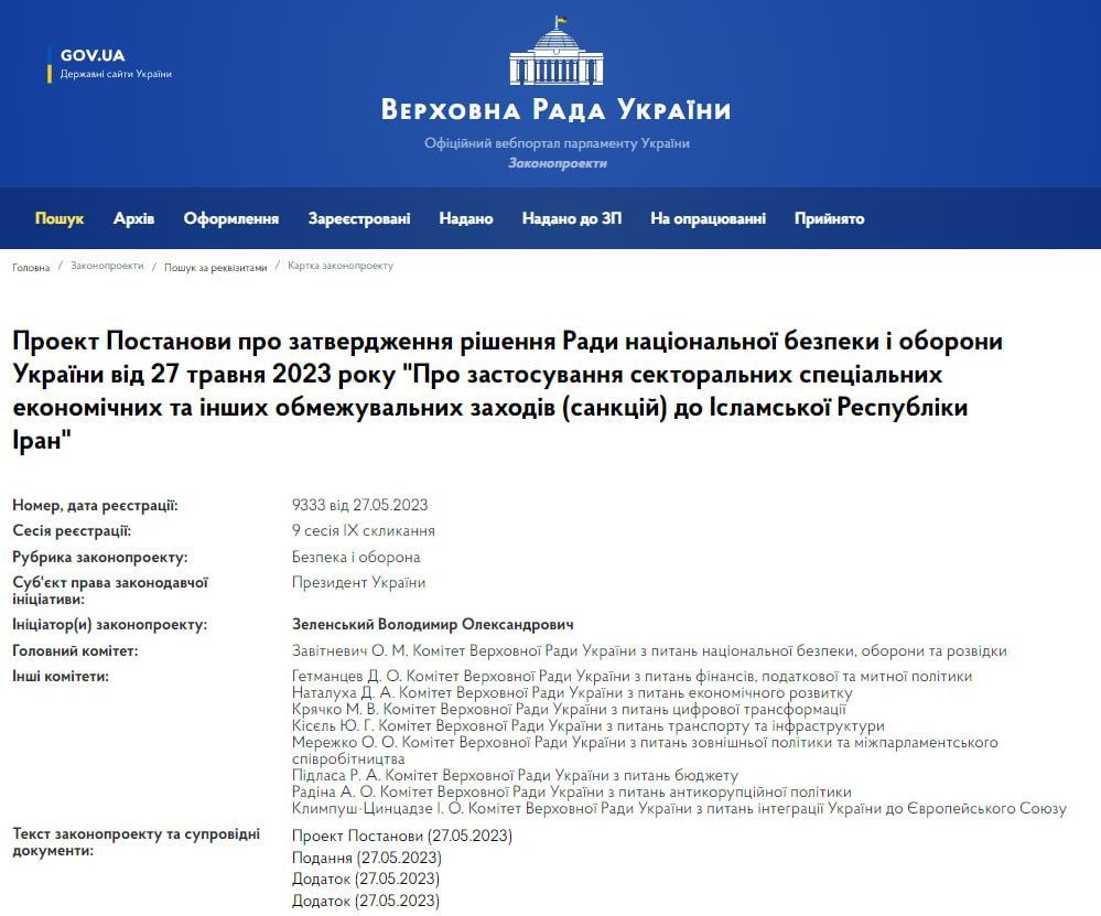 Президент Украины Владимир Зеленский внес в Верховную Раду постановление о введении санкций против Ирана на 50 лет.