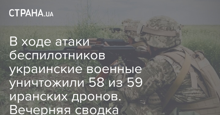 "По уточненной информации, в эти сутки ночью РФ нанесла очередной массированный удар по территории Украины, применив иранские ударные БПЛА "Shahed", 58 из 59 были уничтожены нашими защитниками", - пишет Генштаб.