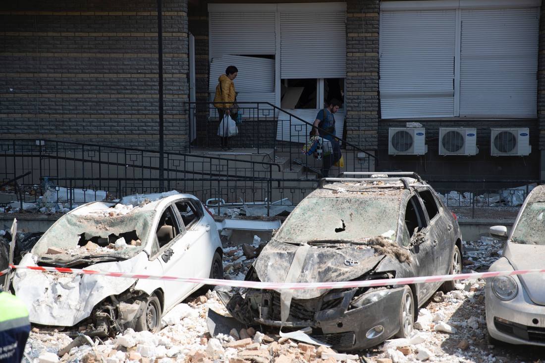 Ночью из поврежденного дома в Голосеевском районе Киева эвакуировали 20 жителей. Спасатели разбирают аварийные элементы дома, со двора вывозят поврежденные автомобили жителей.
