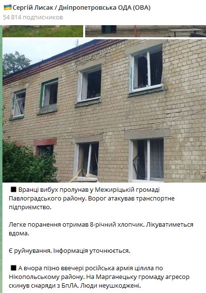 07.40 Утром россияне обстреляли Межирецкую громаду Павлоградского района Днепропетровской области. Враг атаковал транспортное предприятие.