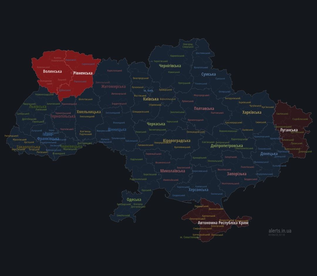 07.35 Воздушная тревога в Киеве и всей восточной части Украины.
