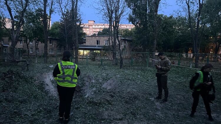 Место одного из прилетов в Киеве. Фото: facebook.com/UA.National.Police