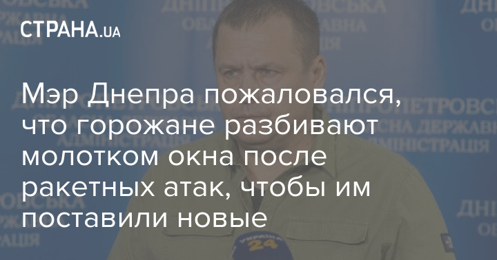 Мэр Днепра Борис Филатов пожаловался, что после ракетных атак жители города разбивают себе уцелевшие окна молотком, чтобы мэрия ставила им новые, более современные и качественные.
