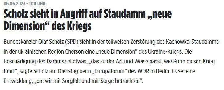 Канцлер Германии Олаф Шольц назвал подрыв Каховской дамбы "новым измерением" войны в Украине.