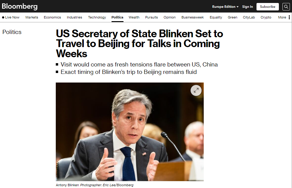Госсекретарь Соединенных Штатов Энтони Блинкен в ближайшие недели намерен посетить Китай. Возможно, он встретится с председателем КНР Си Цзиньпином.