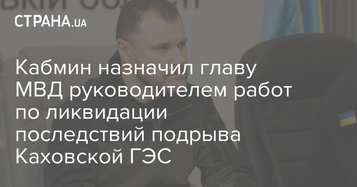 Кабмин назначил главу МВД руководителем работ по ликвидации последствий подрыва Каховской ГЭС