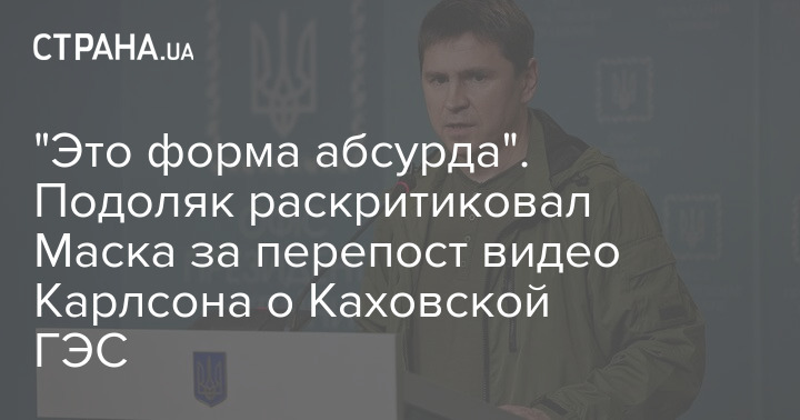 "Это форма абсурда". Подоляк раскритиковал Маска за перепост видео Карлсона о Каховской ГЭС