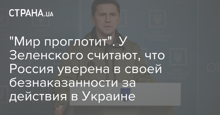 "Сейчас Россия обстреливает Херсон, который тонет, и прибрежные районы, где сейчас идет эвакуация. А знаете, почему на самом деле россияне чувствуют себя так свободно? Потому что прекрасно знают: что бы они ни сделали, это снова проглотят. И уже завтра в мировых медиа выйдет новость: "Что произошло? Украина говорит, что Россия обстреливает людей. Россия говорит, что это метеоритный дождь. Что это на самом деле? Трудно сказать. А теперь к новостям спорта…" Так, может, пора начать называть зло злом и перестать заглядывать в рот военным преступникам?" - говорится в сообщении советника Подоляка.
