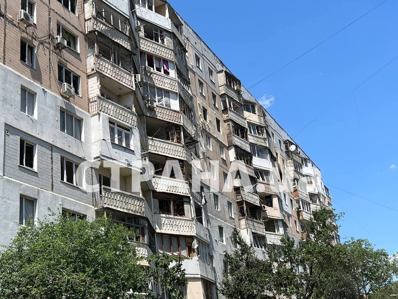 "Было около полуночи. Я сидел в комнате. Услышал звук "Шахеда" вдалеке, а потом, минут через пять, услышал его прямо рядом. Поворачиваю корпус, чтобы встать из-за стола, и тут меня отбрасывает взрывной волной. Вылетела межкомнатная дверь, стекла. Вон моя квартира, окон нет, фиолетовая занавеска болтается. У меня еще кое-как, а у соседей вообще п*дец: двери балконные выбило, вообще все поразлеталось. А там пенсионеры, у которых родственников нет, им помогать некому", - рассказал Артур, чья квартира находится на 7 этаже дома (на фото).