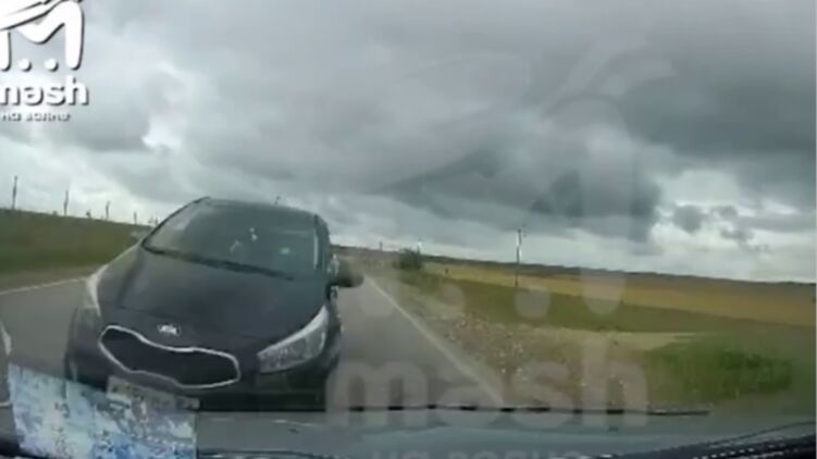 Момент лобового столкновения двух авто в Крыму. Скриншот видео