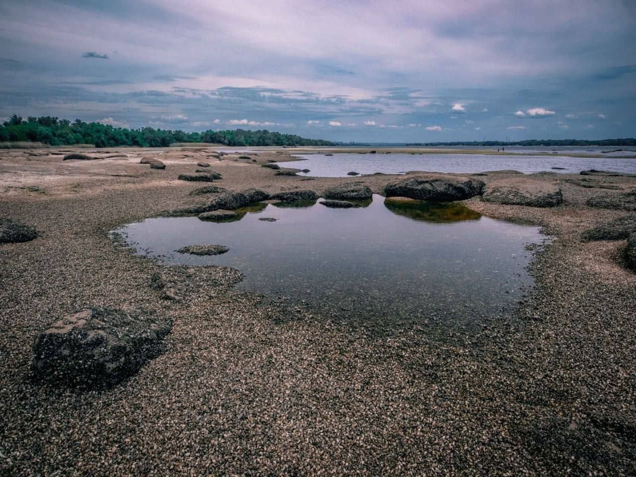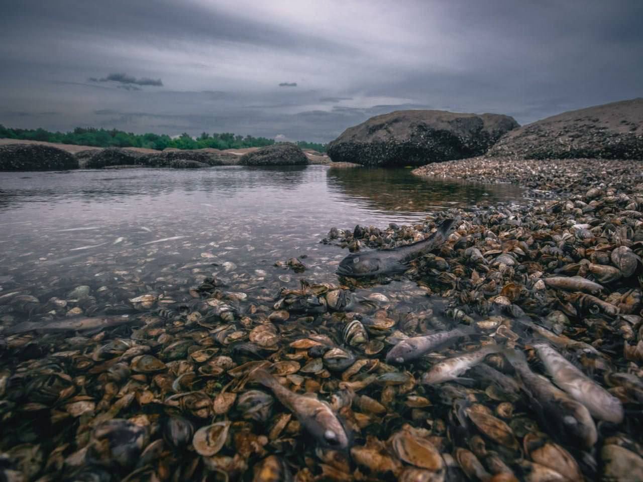 09.10 Так сейчас выглядит Каховское водохранилище после обмеления. Погибло много рыбы и моллюсков.