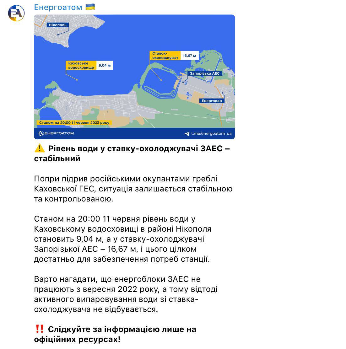 Таким образом, несмотря на подрыв плотины Каховской ГЭС, ситуация остается стабильной и контролируемой.
