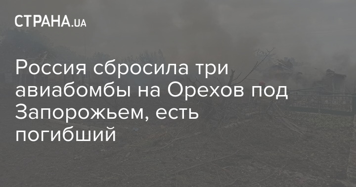 На прифронтовой Орехов, со стороны которого в последнюю неделю наступают ВСУ, россияне сбросили три управляемые авиабомбы. Один человек погиб, еще один ранен. Разрушены частные дома и коммуникации.