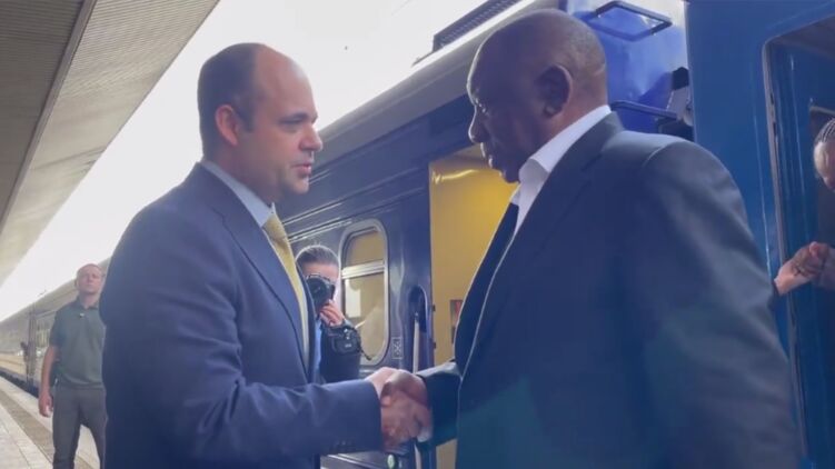 На вокзале Рамафосу встретили спецпредставитель Украины по делам Африки и Ближнего Востока Максим Субх и посол Южно-Африканской Республики в Украине Андре Гроневальд.
