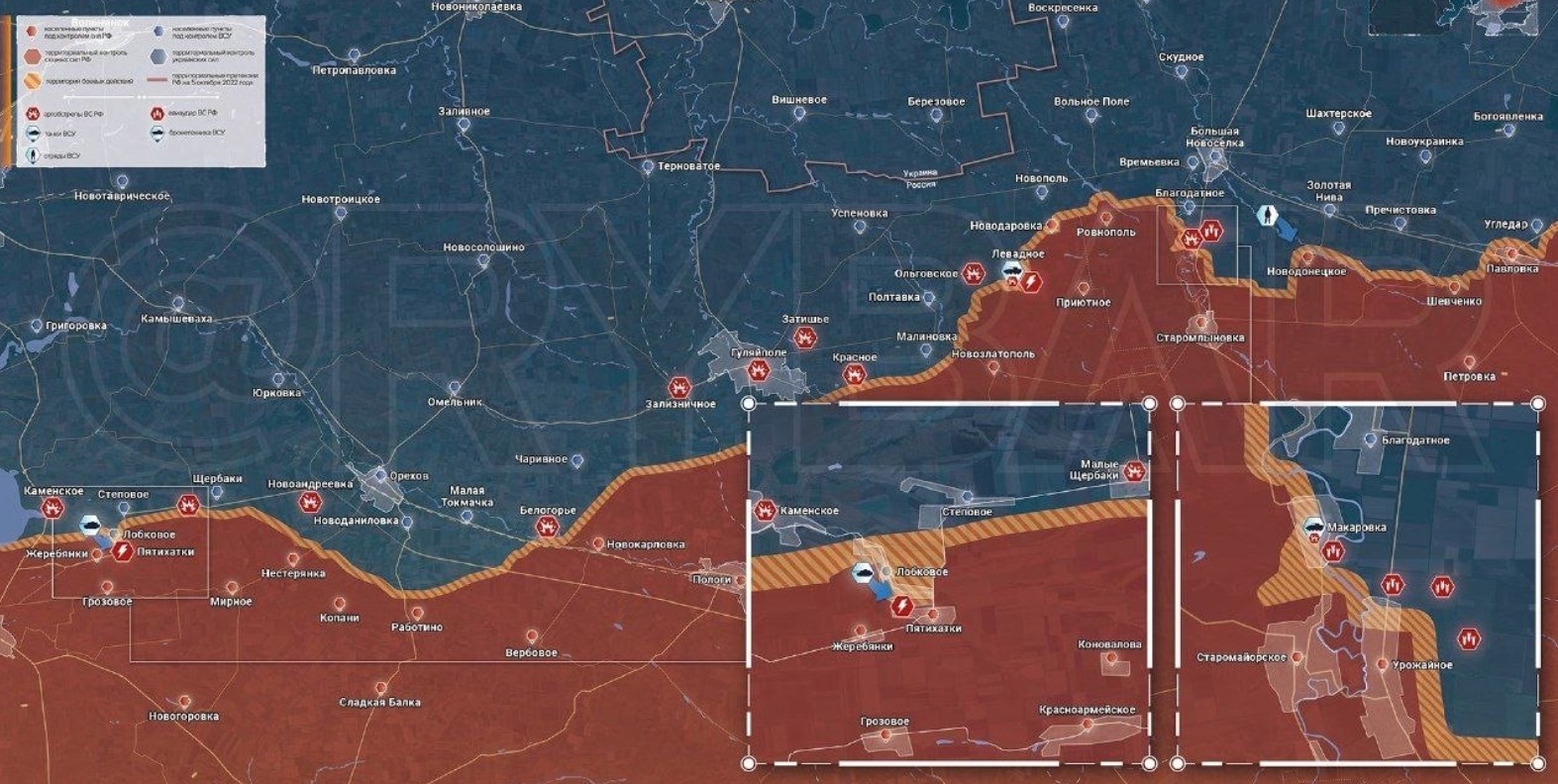 По утренним данным Генштаба, ВСУ наступали на юге. А именно - на направлениях Новоданиловка - Работино под Ореховым и Левадное - Старомайорское под Великой Новоселкой.