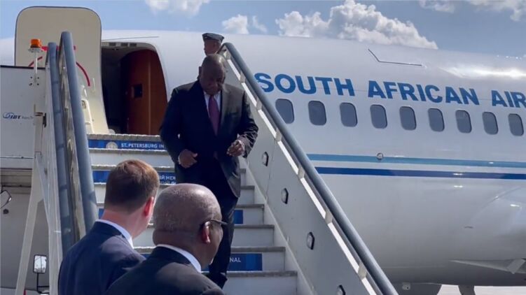 В субботу, 17 июня, президент ЮАР Сирил Рамафоса прибыл в аэропорт Санкт-Петербурга.