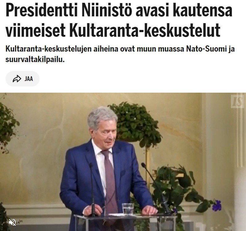 В частности, Ниинистё упомянул группу БРИКС, которая, как он выразился, "становится все более привлекательной" и рассматривается как "своего рода противодействие Западу".