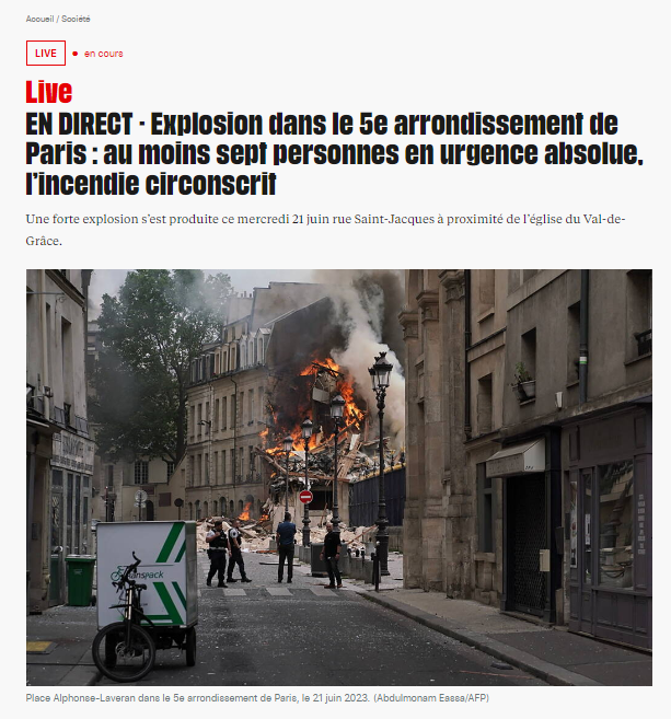 "Жители пятого округа, произошел взрыв газа на площади Альфонса Лаверана в районе Валь-де-Грас, некоторые здания горят. Пожалуйста, держитесь на расстоянии, чтобы дать возможность пожарной бригаде вмешаться", — заявил первый заместитель мэра пятого округа Эдуард Сивель.