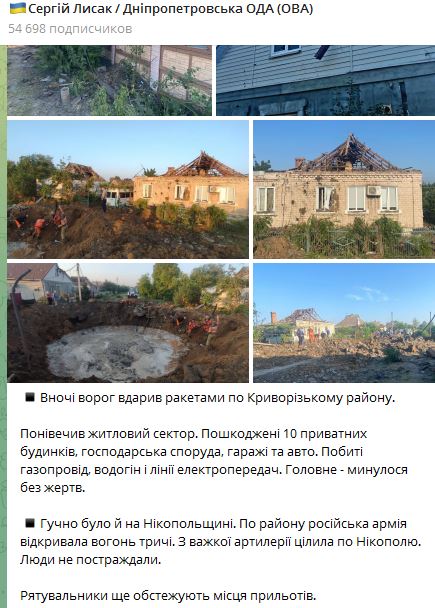 Ночью был ракетный удар по Криворожскому району Днепропетровской области.